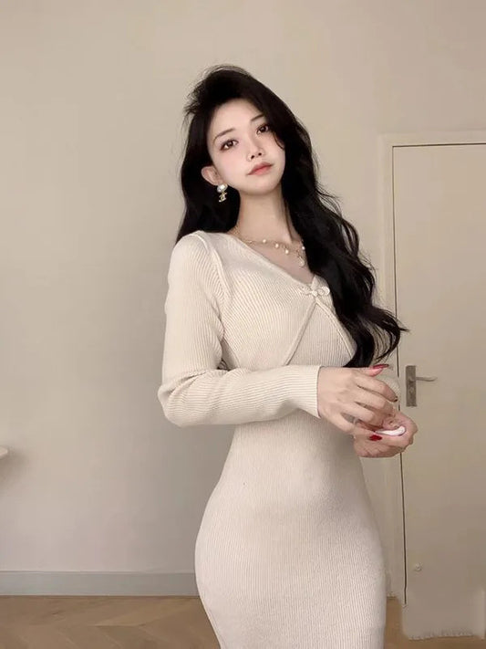 Autumn And Winter New Chinese Retro Red Knitted Hip Skirt
