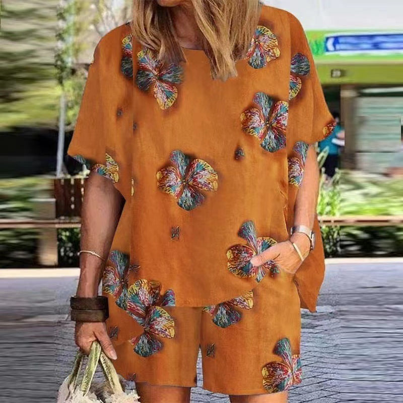 Cotton And Linen Plus Size Women's Clothing Printed Women's Retro Set